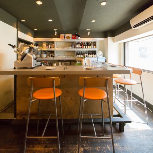 【落ち着いたアットホームな雰囲気で食事】白い壁と黒とウッドを基調とした天井が心地よい空間を演出します。大人のためのリラックスした食事時間を提供する当店では入口からは見えないカウンター席が6席完備。おひとり様でも気軽にご来店いただけます。